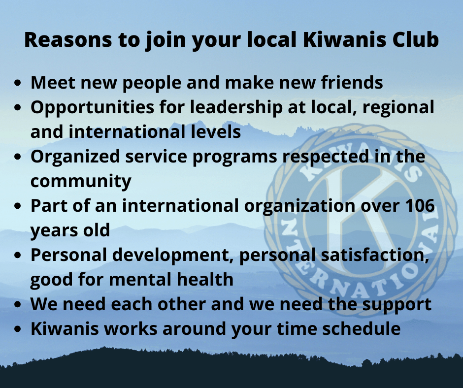 The Kiwanis Club of Westfield welcomes new members. If you are interested in coming to a meeting to find out more information, we meet Thursday nights at 6:05 PM at Shaker Farms Country Club, 866 Shaker Road, Westfield.