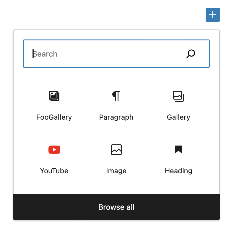 If you click on it, it will bring up a dialog for searching blocks as well: