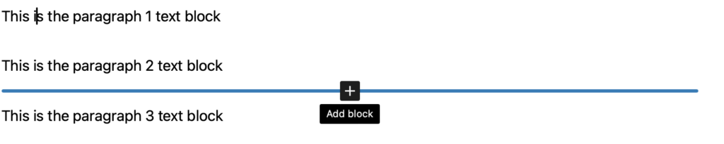 Now let’s say you want to add a new paragraph between blocks 2 and 3 above. There are a few different ways to accomplish this.